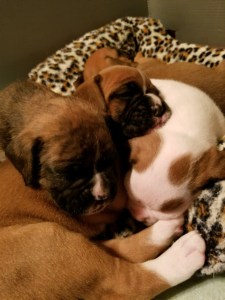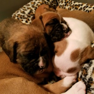 My first experience with boxers began when my Father brought home a beautiful fawn dog named Pharroh Random Star aka Star. As a young child I remember using his body as a pillow and reading to him believing he was following the story line because he was so content and patient. My family continued to have Boxers through the years including rescues, old and young. As I entered adulthood my love for the breed grew and is now shared with my husband and grown children. Our interest include confirmation and soon to begin agility.